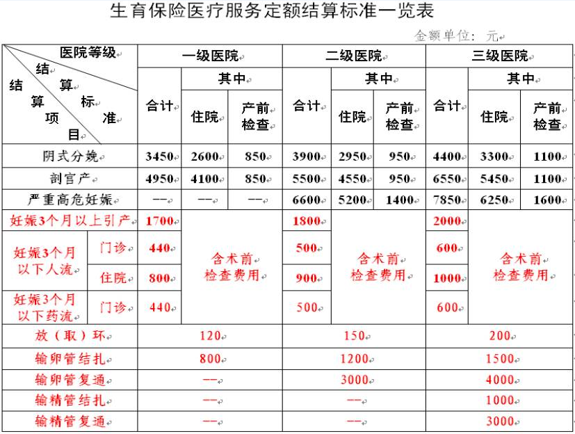 图:生育保险报销费用细则