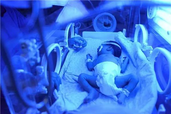 正在蓝光治疗的新生儿